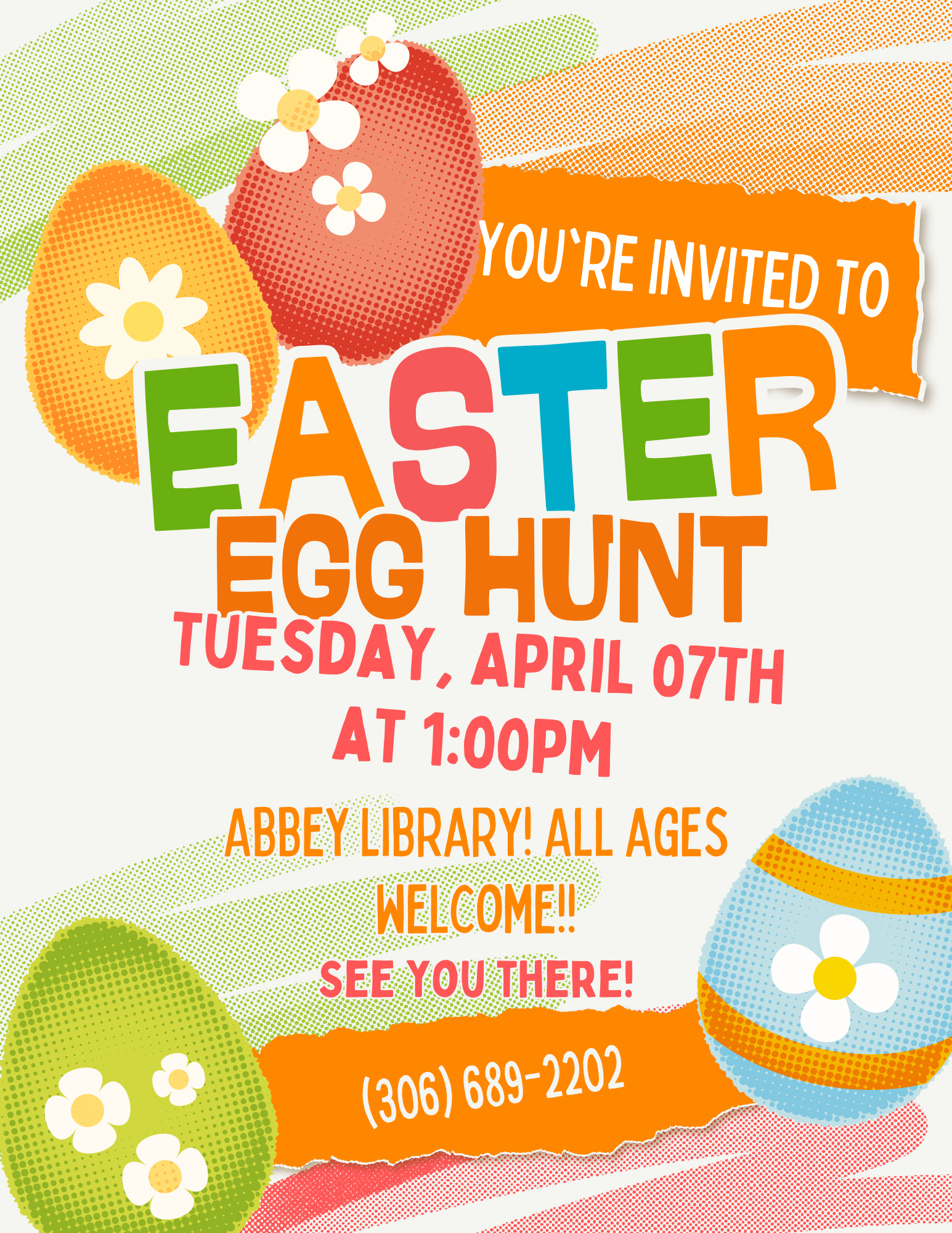 Easter Egg Hunt Tuesday, April 7, 2026 1:00 PM 2:00 PM 13:00 14:00 Village of Abbey Box 210 Abbey SK S0N 0A0 Canada (map) Google Calendar ICS